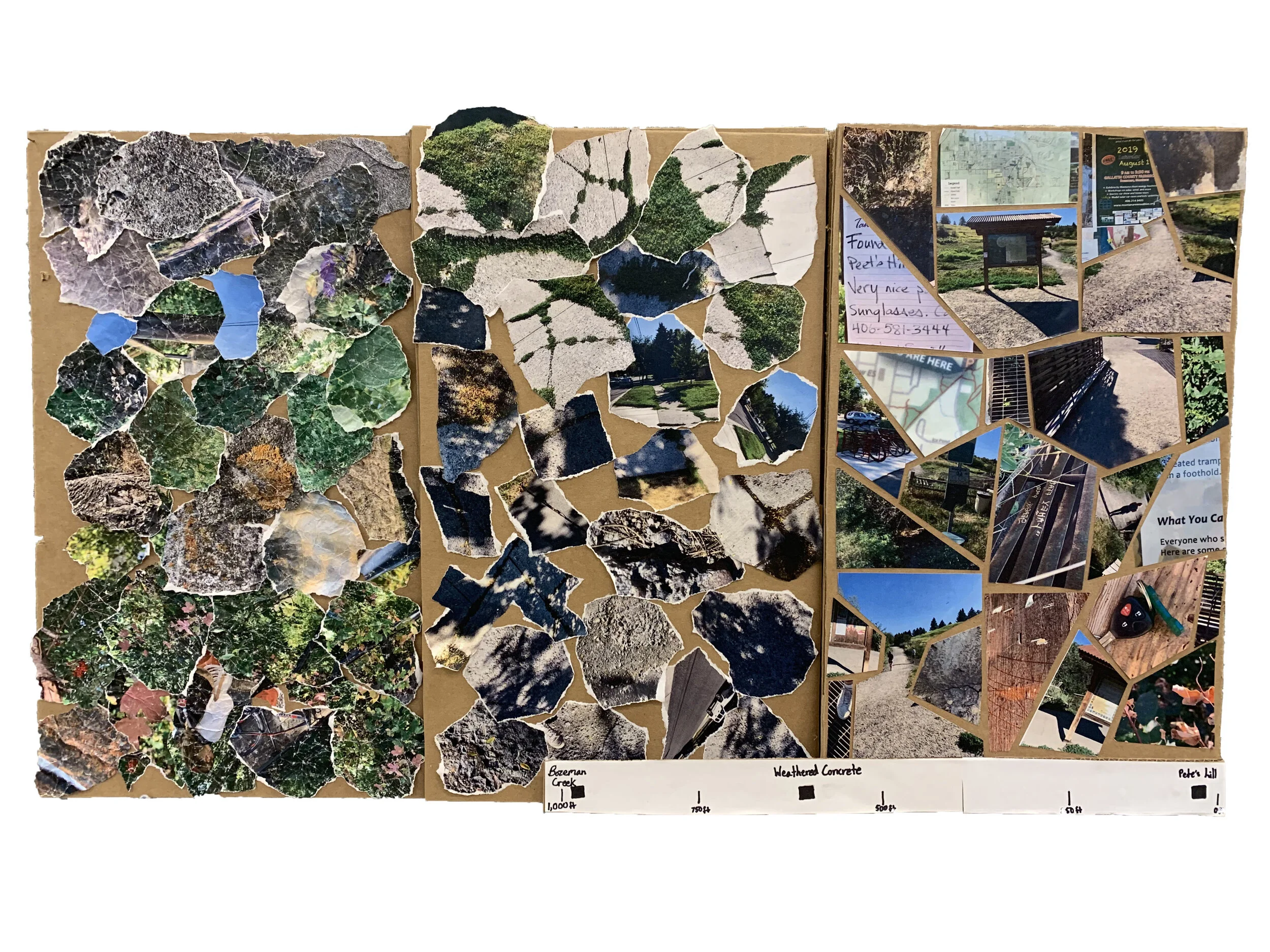 After our initial site mapping, we decided we wanted to map and analyze the textures, colors, and social hierarchies within our site. We physically manipulated the photos to reflect the qualities of these systemic properties.