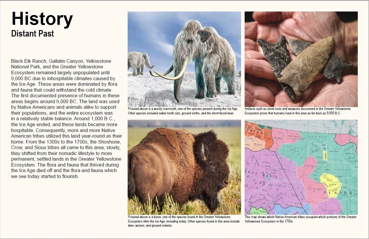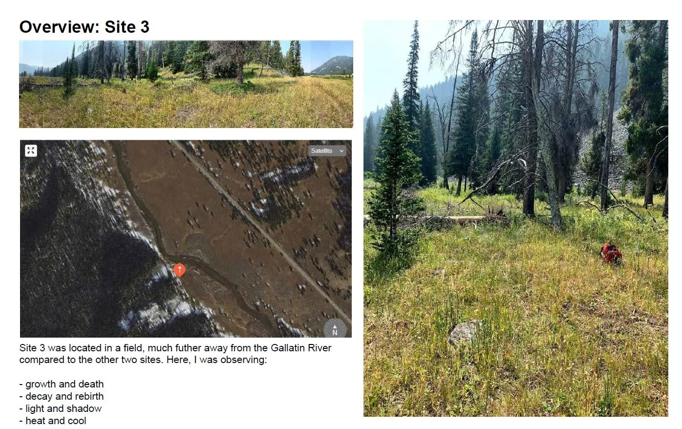 Black Butte Ranch is a private plot of land with a rich history. It is situated in southwestern Montana near the intersection of Montana, Wyoming, and Idaho. Its proximity to Yellowstone National Park, as well as its situation within the Greater Yellowstone Ecosystem, makes this plot of land extremely unique. The Greater Yellowstone Ecosystem -- which includes Black Butte Ranch -- is influenced by a number of factors today, including its chronological history, social and political location, economy, geographical location, sense of deep time, geology, and ecology. When I was conducting my research prior to our trip to the ranch, one of the things that most stood out to me was this region’s sense of deep time. The Greater Yellowstone Ecosystem is one of the best-preserved, intact ecosystems in the world. This became very apparent to me when we visited the site; Black Butte Ranch was minimally developed, and most of the land we traversed was ungroomed and unaltered by human intervention. This changed how I viewed the site. It framed this historic location as something deserving of preservation, and it gave me a sense of how vast this area’s history is. It made apparent how many systems are present on this site and how far in time these systems reach.