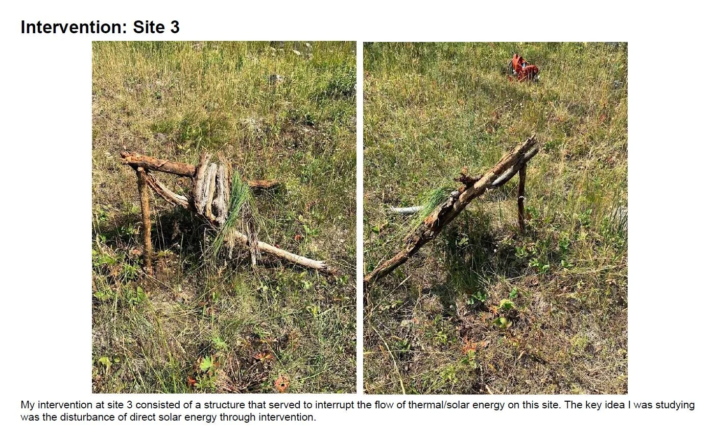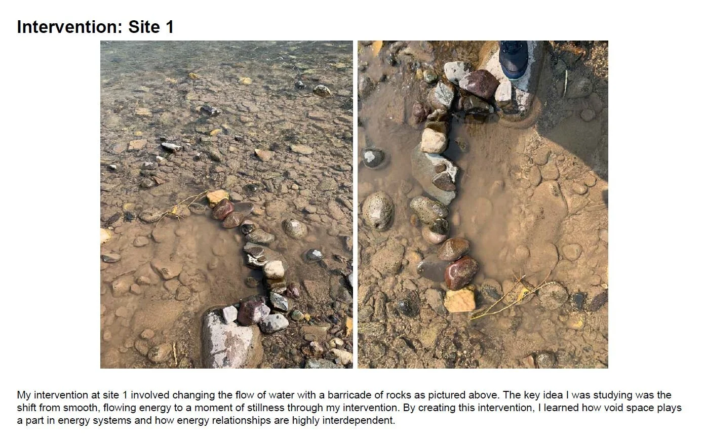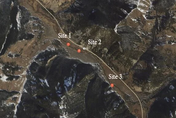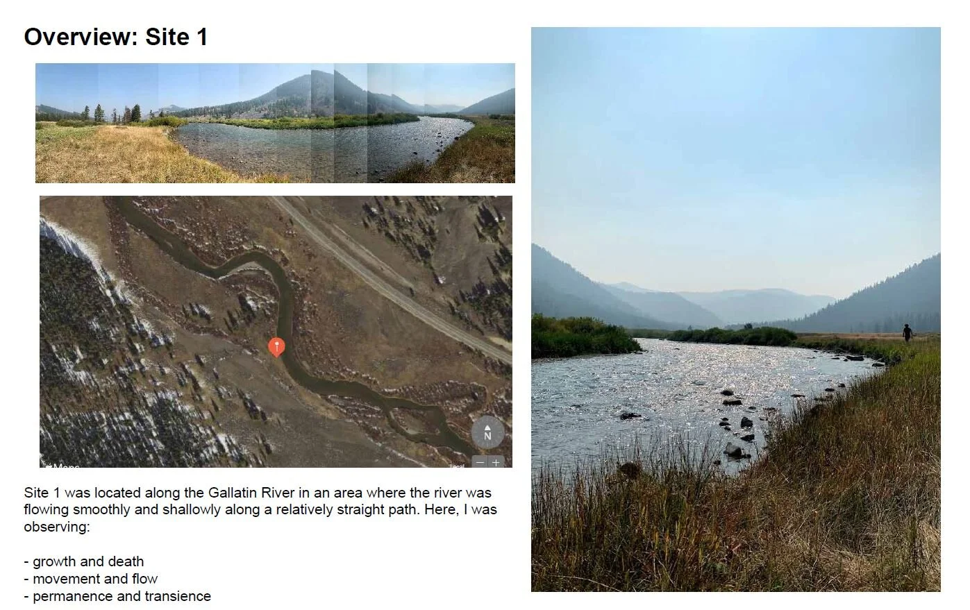 Upon our arrival at Black Butte Ranch, I chose to explore the northern region of the ranch which encompassed a portion of the Gallatin River. After exploring the area, I chose three sites which I thought contained an interesting and diverse intersection of physical and virtual systems. On each site, I constructed a different intervention which served to change the energies of the site in some way. These three sites are marked on the map below.